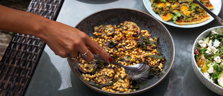 A dish to raise eyebrows. Cooked cucumber?! Don’t worry, the cucumber stays crunchy but through being charred with half a lemon on the BBQ or under the oven grill (or in our case, in a hot pan) it gets infused with a smoky flavour and citrus aroma. Add the zingy dressing and a generous crumbling of feta cheese and you’ve got a refreshing and interesting salad to provide a bit of lightness to the table.