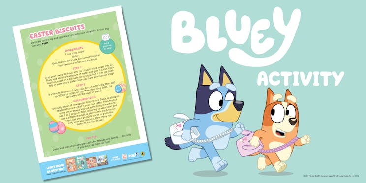 Easter fun with Bluey! Whether you're a fan of quizzes, crafts, colouring, or biscuit decorating, we've rounded up the best Easter activities so you and your little ones can celebrate Easter with their favourite, Bluey!