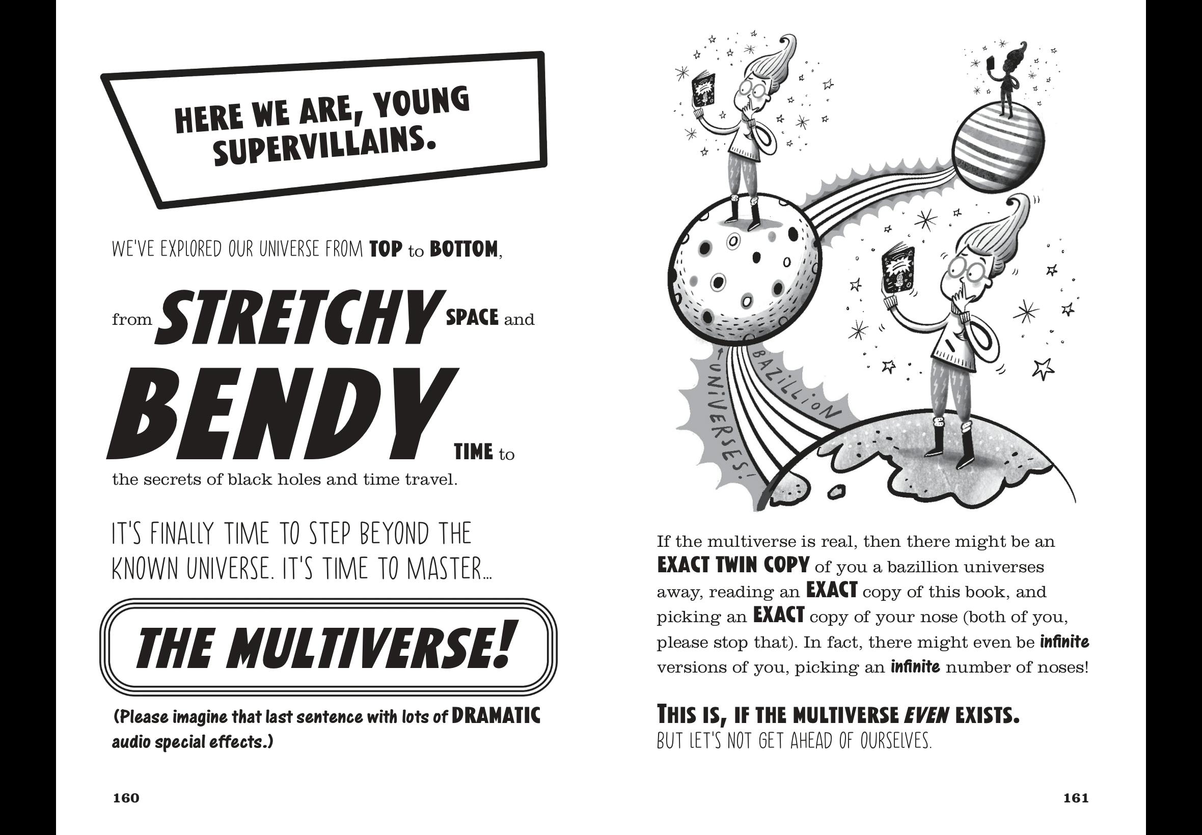 Discover the answers to these questions and many more at the Supervillain Academy – the magnificently morbid school for young bad folks-in-training. Discover how time can speed up or slow down depending on where you are, what happens when black holes collide, and whether wormholes could be the key to instant travel across vast distances.