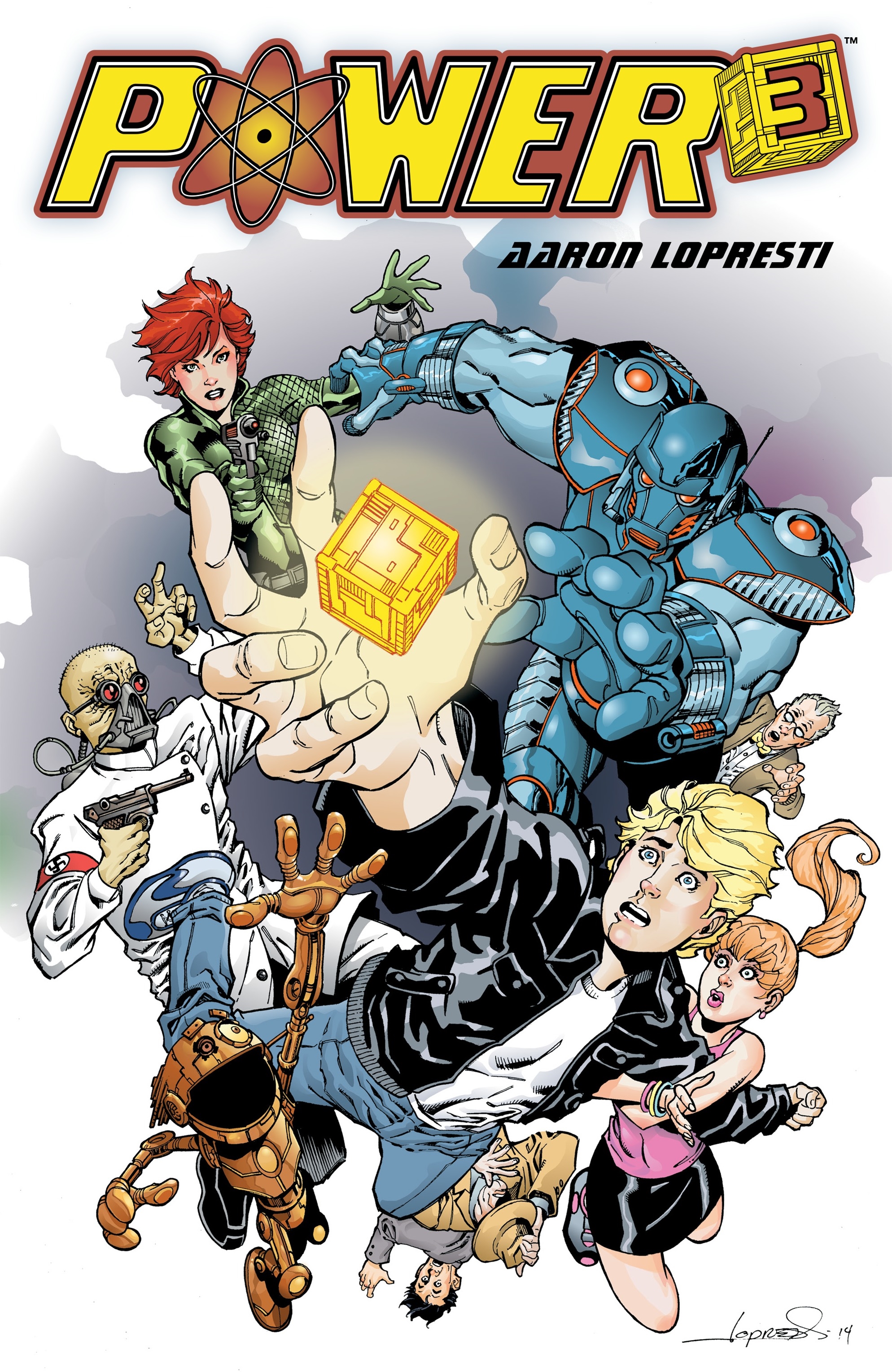Aaron Lopresti is a well-regarded American comic book artist who has worked on a wide variety of characters including: Spiderman The X-men, The Hulk, The Avengers, Batman, Plastic Man, Green Lantern, Superboy, Xena, Star Trek, Gen 13, Mystic, and the self published Atomic Toybox (just to name a few). Power Cubed is his first creator owned project for Dark Horse.