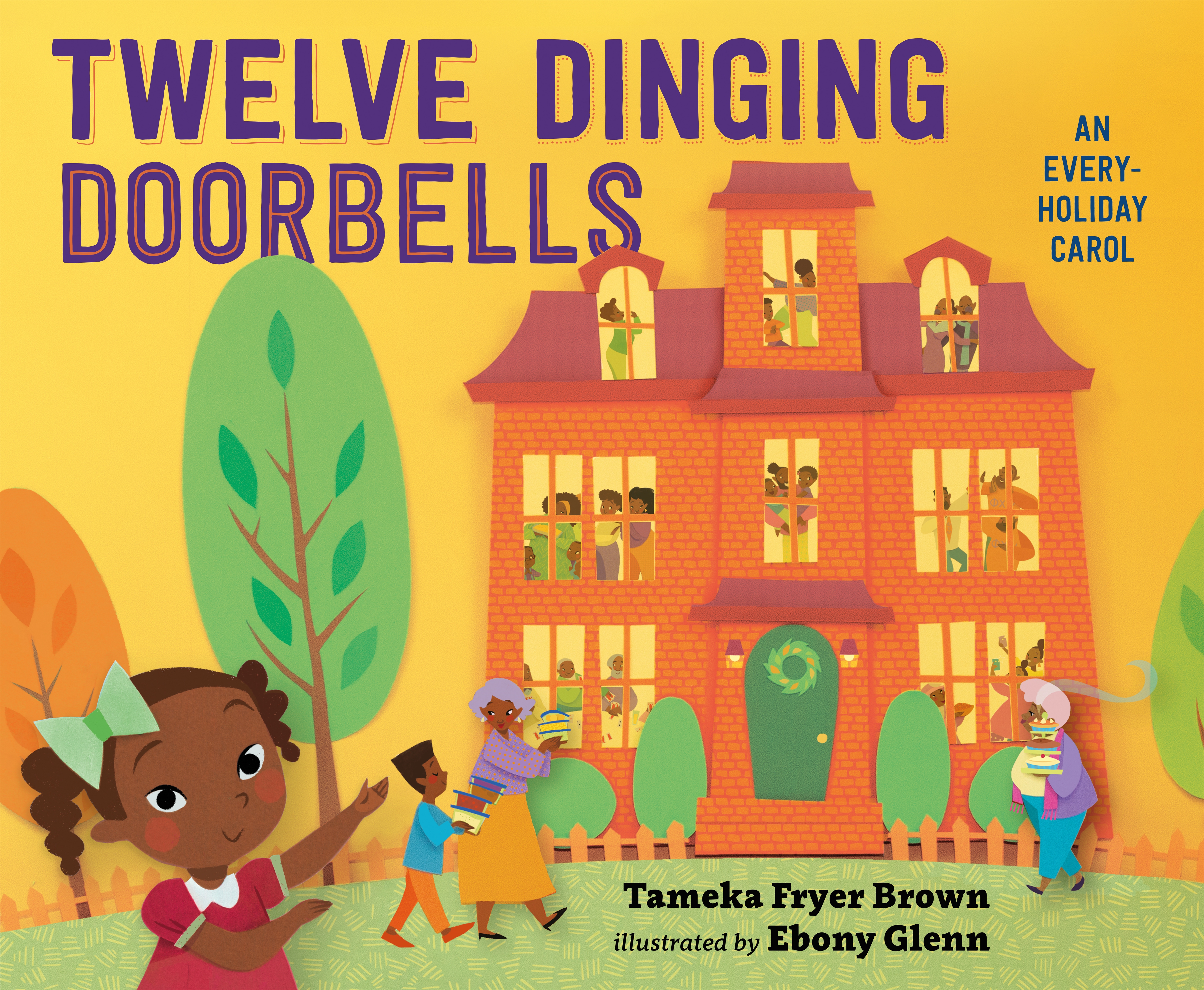 Written to the tune of “The Twelve Days of Christmas,” Twelve Dinging Doorbells is exuberant. Author Tameka Fryer Brown’s cumulative rhyme is impossible to resist, and the humorous details in Ebony Glenn’s cut-paper collage will welcome readers to this party again and again.